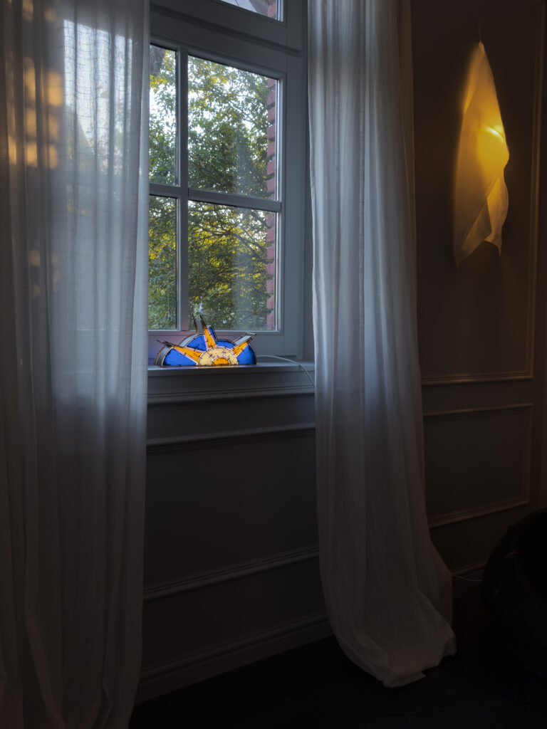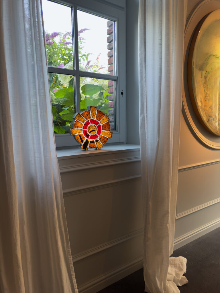 Craftsmanship with a Story My light objects are a fusion of time-honored techniques and modern creativity. Each piece is handcrafted and tells a story, inspired by the stained glass windows of churches and the symbolism of light. The delicate silver frame replaces traditional lead, adding a refined, sacred quality to the design. By combining glass and silver, these objects create a unique play of light and shadow that subtly transforms the space. The use of noble materials such as glass and silver not only results in a visually stunning effect but also imbues the objects with a spiritual significance. Each light object is a tribute to craftsmanship, patience, and passion. The hand-cut glass and the precision with which the silver is shaped make every piece one of a kind and deeply meaningful. Whether placed in a modern or classical setting, these light objects bring warmth, elegance, and a touch of mystique to any space.